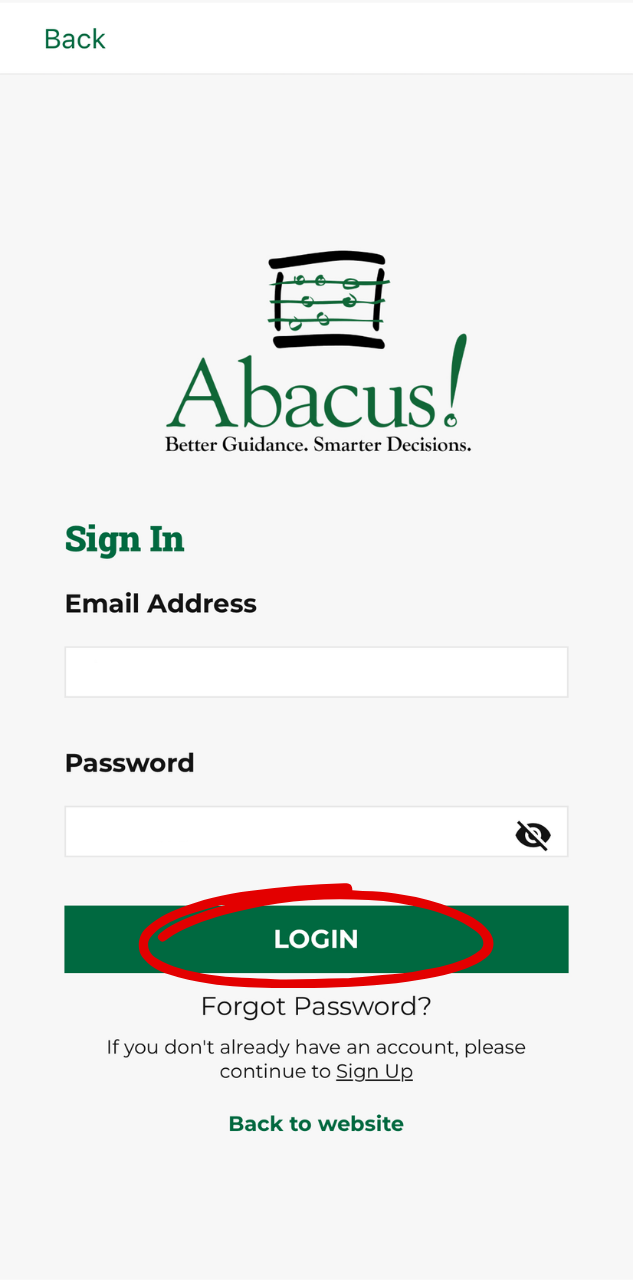 - Sign in with your existing Abacus! App account, or sign up using your registered Abacus! email address. Need help? View the How to Sign Up guide here.